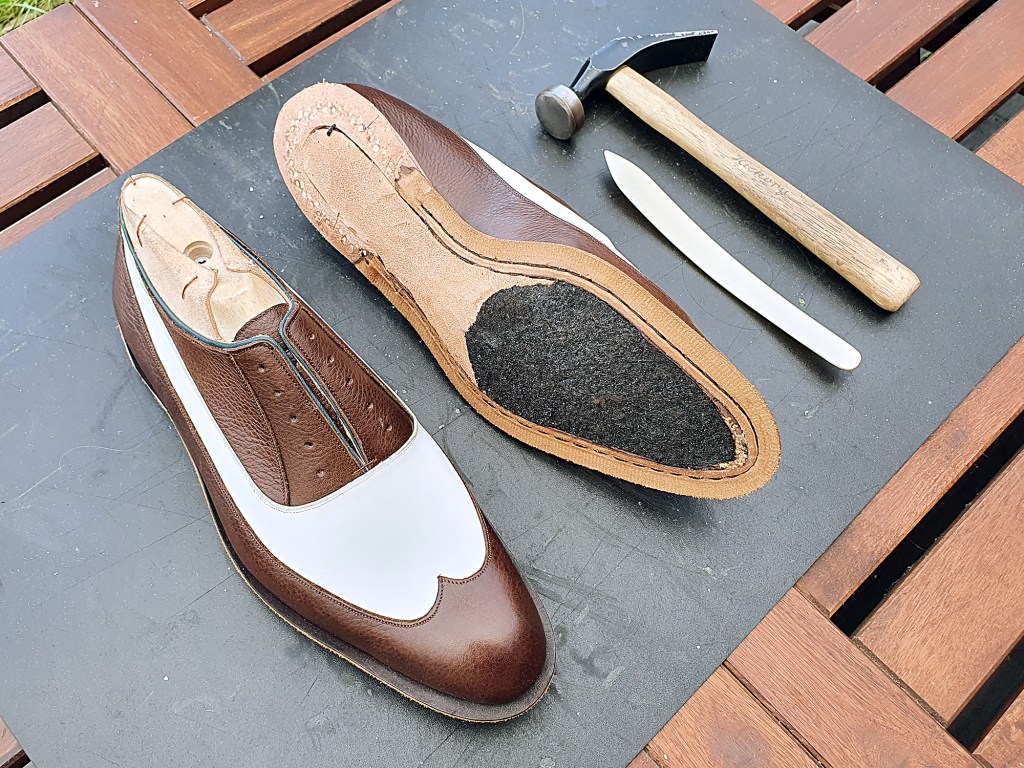 Ever since I started making shoes, I’ve been wanting to make a hand welted golf shoe with Softspikes, for myself. I did make a ‘golfy’ design for the shoes Augusta a good while back (and they do look quite embarrassing now). But, in lack of an idea on how to construct a proper golf sole at the time, Augusta got regular leather outsoles.