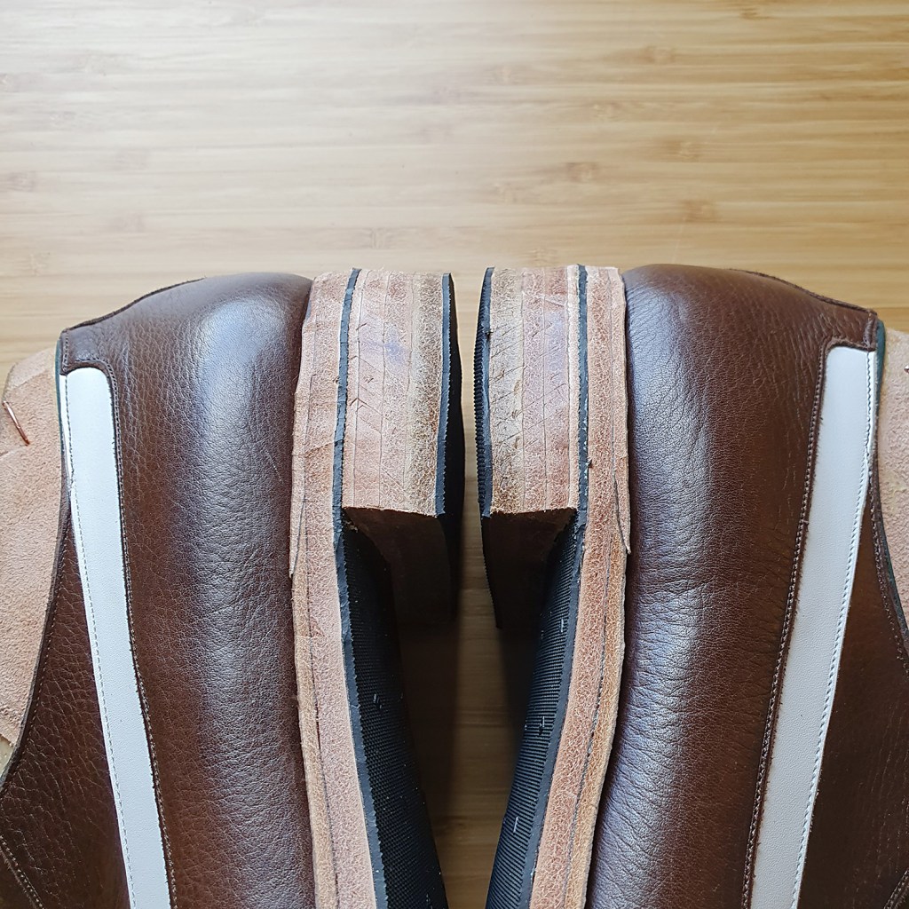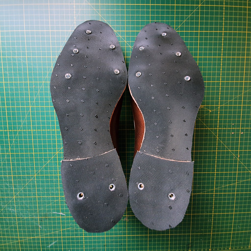 And this is exactly where I am at the time of writing. I have no idea whether the shoes will actually work, maintaining balance throughout the explosive golf swing, trodding through wet rough for a couple of hours over 18 holes… Time will tell. At any rate, the construction is complete, and now “only” the finishing remains.