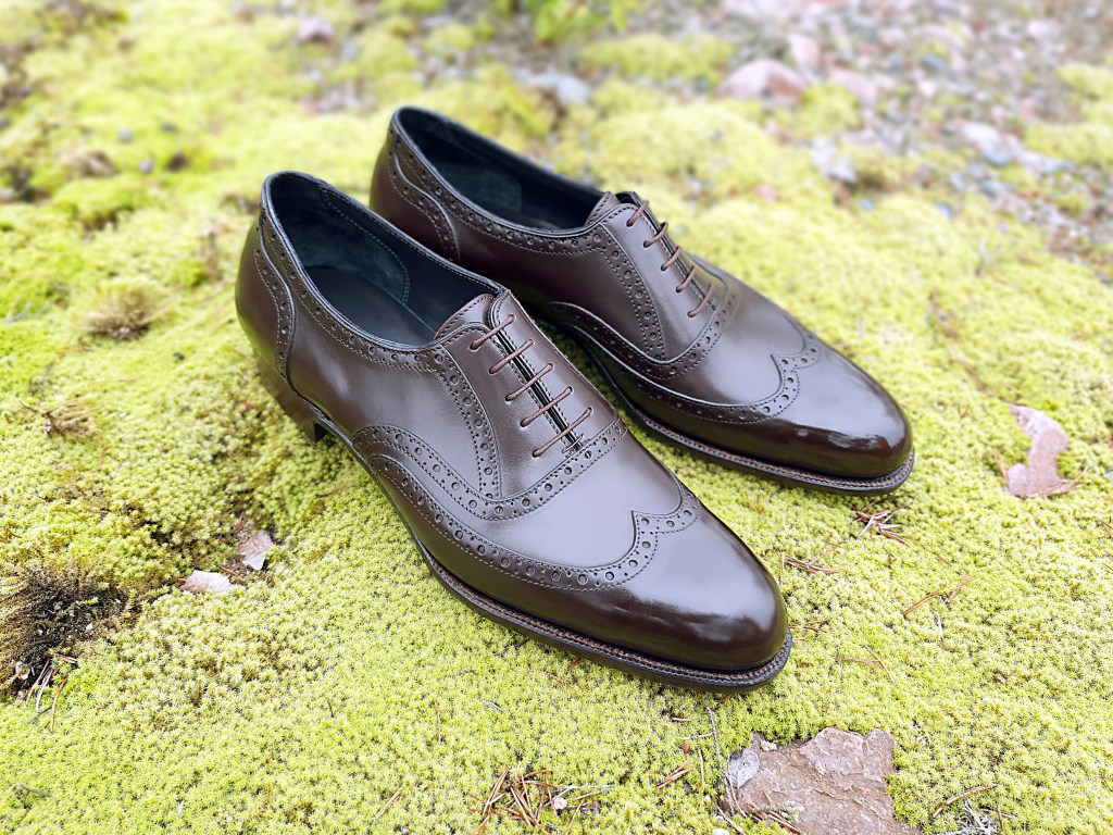 Long have I wanted to make this shoe: a full brogue minus the medallion, in dark brown box calf. I give you Alfheim, my 29th pair of adult sized shoes.
