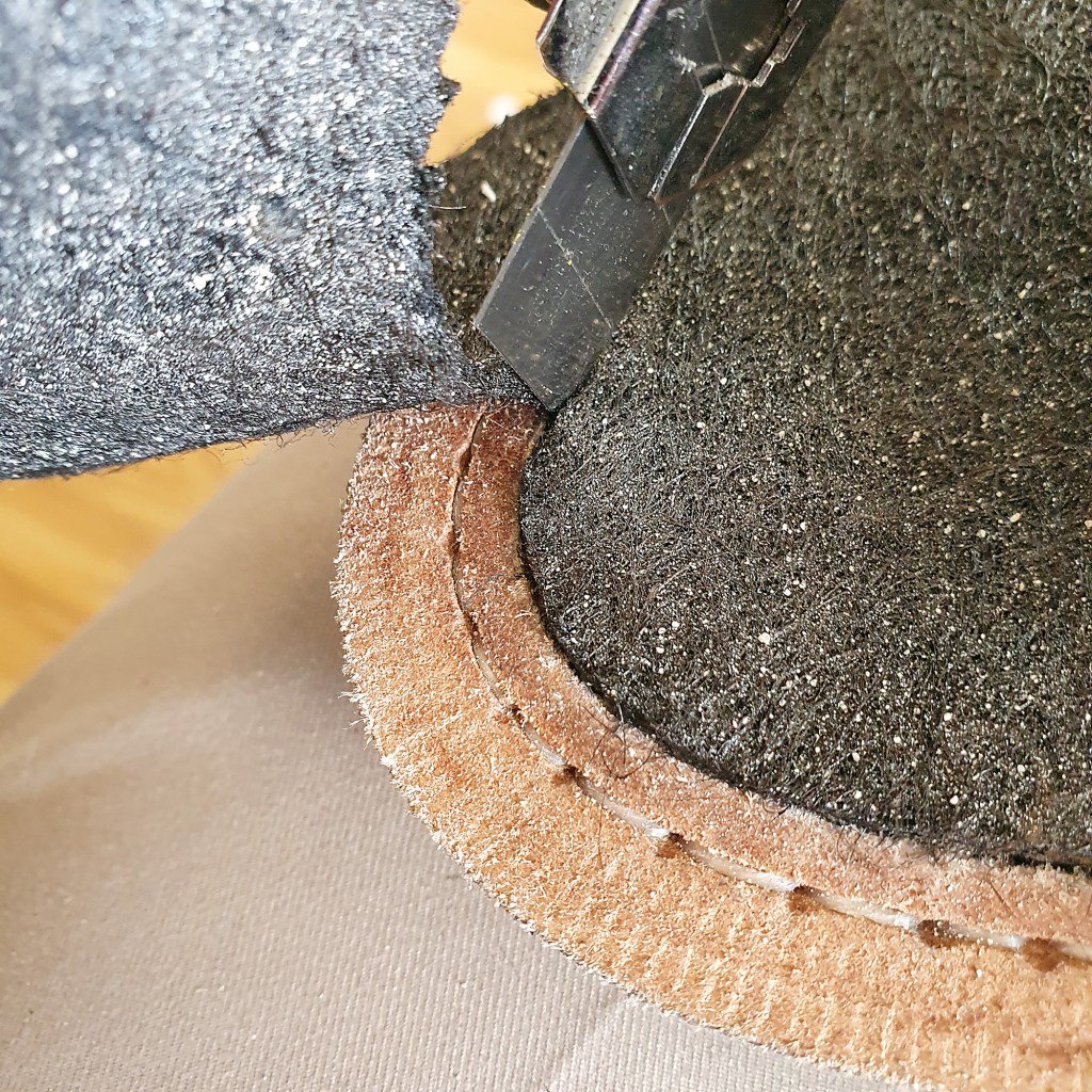 Putting a second rand on top of the outsoles, I had first skived it and then trimmed it even more once in place. This is starting to create an even surface for the heel building. The leather used for second rand and heel lifts is a special bend for heel making. Like the outsoles, it was sourced from Tannerie Garat, and was lovely to work with.