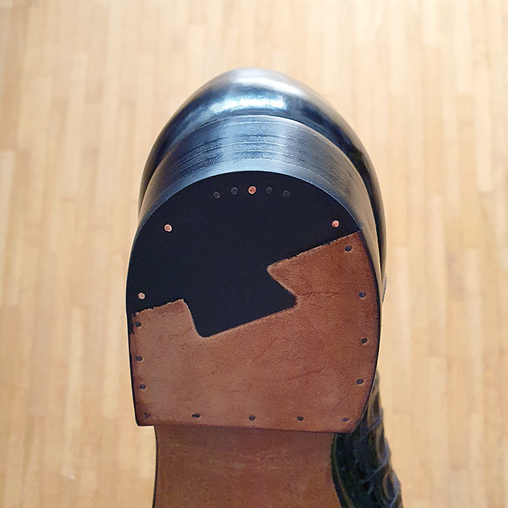 I try to think of this blunder as a blessing in disguise, since I wasn’t really happy with my original choice of top lifts to begin with. The ones I had first put on were not oak bark tanned, and didn’t really match the outsole colour. Furthermore, the original lifts were slightly too thick to get to the right heel height: the original heels had thus become slightly too high. (I wouldn’t have ripped them off only due to that, though. They weren’t catastrophically high, just slightly higher than the optimal toe spring of the last.)